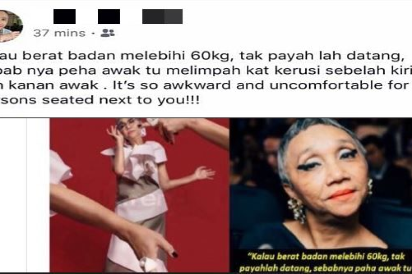 Dalam pada itu, status kontroversi Kak Zai mengenai isu berat badan itu dipercayai sudah dipadam dari laman Facebook peribadinya.