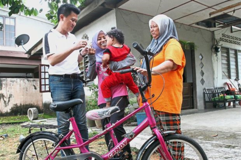Shafarina ternyata terharu apabila menitiskan air mata ketika menerima basikal dan wang daripada Sin Woon.