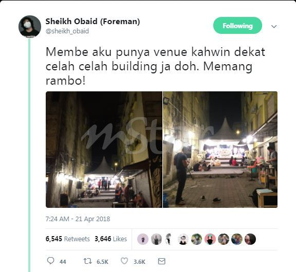 "Akhirnya saya dapat ilham untuk buat majlis di celah bangunan yang mana ia sebenarnya bersebelahan lokasi kafe adik saya," ujarnya ketika dihubungi mStar Online, Isnin.