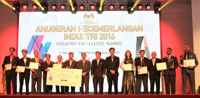 Menteri Perdagangan Antarabangsa dan Industri Datuk Seri Mustapa Mohamed dan Datuk Seri Ong Ka Chuan bersama barisan pemenang AKI 2016.