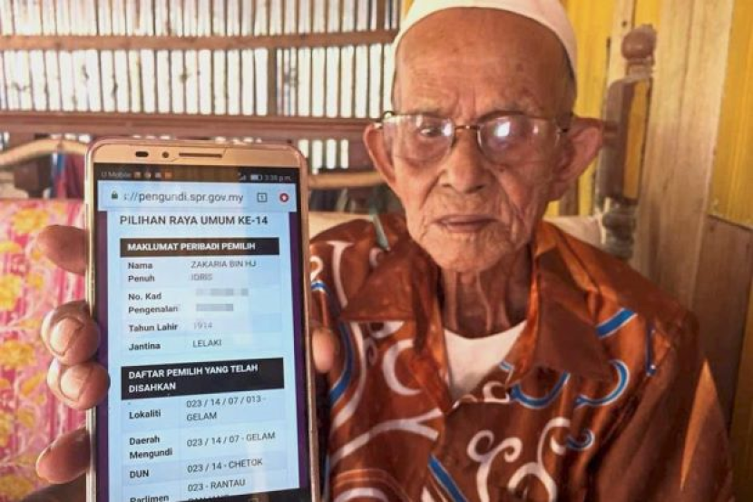 KOTA BHARU: Seorang warga emas, Zakaria Idris yang akan menjangkau usia 104 tahun pada Disember, mempunyai mesej untuk mereka yang merancang untuk tidak mengambil bahagian atau merosakkan undi mereka pada Pilihan Raya Umum ke-14 (PRU14).