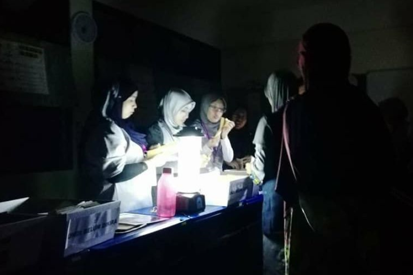 Gangguan bekalan elektrik itu berlaku ketika petugas sedang mengira kertas undi.