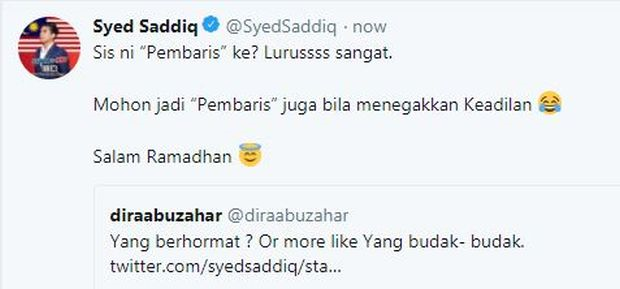 “Mohon jadi ‘pembaris’ juga bila menegakkan keadilan,” kata Syed Saddiq di akaun Twitter miliknya, petang Ahad.