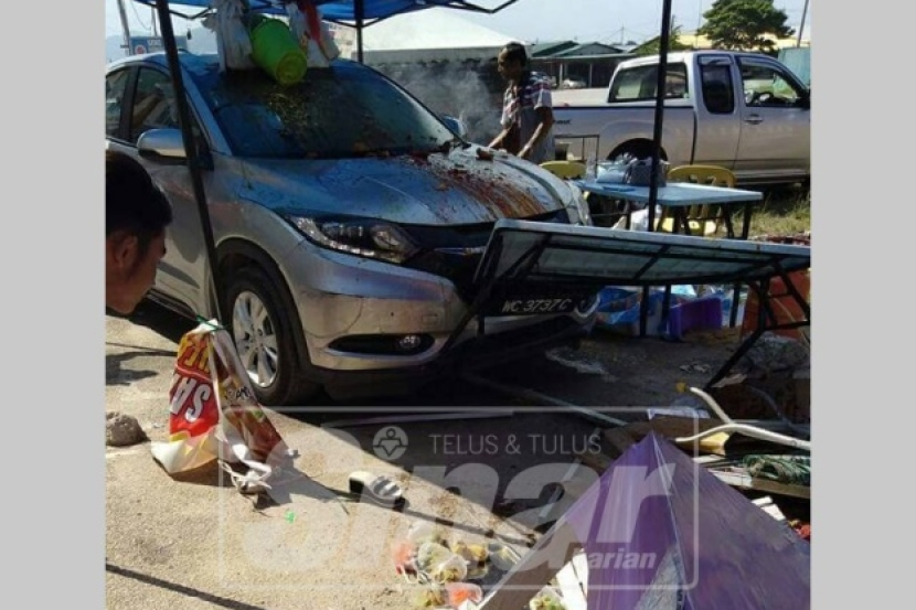 Dalam kejadian kira-kira pukul 3.30 petang itu, mangsa baru sahaja memulakan perniagaan sebelum sebuah Honda HRV dipandu seorang wanita merempuh gerai mereka.