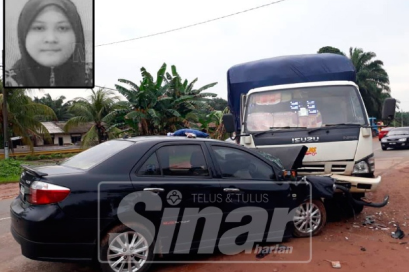 Dalam kejadian pukul 2.30 petang itu, kereta mangsa jenis Toyota Vios terbabas ke laluan bertentangan dalam keadaan cuaca hujan dan bertembung dengan lori di jalan selekoh di laluan berkenaan.