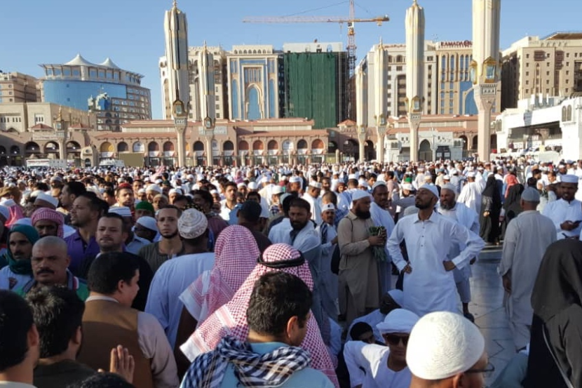 “Sebelum Subuh jemaah sudah mula datang ke masjid. Kami keluar dari hotel penginapan pada jam 3.45 pagi. Masa itu masjid dah mula penuh dan kami terpaksa bersolat di perkarangan masjid iaitu depan pintu 15. Solat raya pada 5.48 pagi dan pada 6.19 pagi khutbah serta doa disempurnakan oleh imam,” katanya menerusi aplikasi whatsapp.