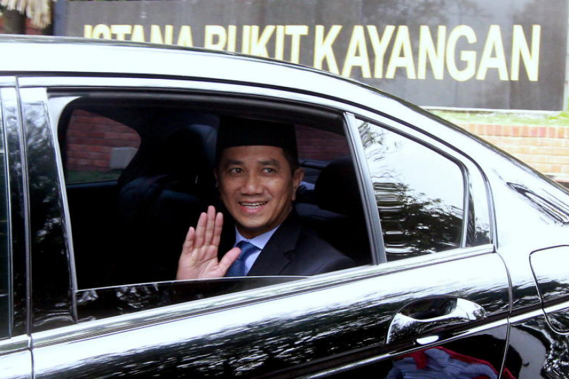 Terdahulu, Mohamed Azmin tiba di Istana Bukit Kayangan jam 10.47 pagi menaiki kenderaan rasmi kerajaan negeri.