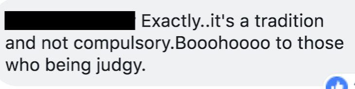 "Dalam zaman sekarang ini, apa yang boleh dibuat oleh anak-anak itu dengannya? Penilaian bahawa 'zaman anda' dulu duit raya sebanyak itu diberikan sudah memadai, tetapi sekarang, tak baik buat macam tu," tulis individu berkenaan sambil menambah kanak-kanak harus mempunyai sesuatu untuk diraikan dalam perayaan setahun sekali ini.