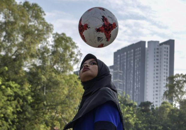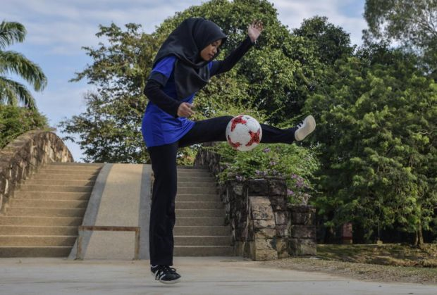 PETALING JAYA: Gerakan bola sepak gaya bebas atau free style football yang dilakukan seorang gadis warga Malaysia beragama Islam menjadi perhatian di negara yang mana sukan tersebut didominasi lelaki.