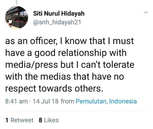 "Sebagai seorang pegawai, saya tahu saya perlu ada hubungan baik dengan media, tapi saya tidak boleh tolak ansur dengan media yang tiada rasa hormat kepada orang lain."