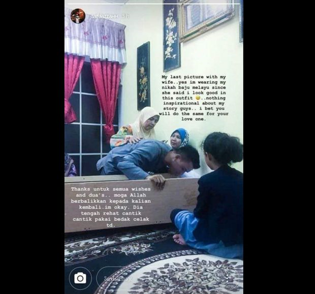 Lebih memilukan apabila pemuda berusia 25 tahun itu turut memuat naik gambar terakhir bersama arwah isterinya.