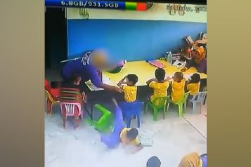 Sementara video kedua yang berdurasi 36 saat menunjukkan tindakan salah seorang guru terbabit menampar seorang kanak-kanak lelaki sehingga terjatuh dari kerusi.-- Bernama