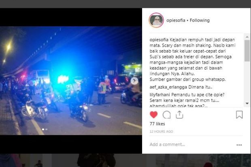 Menurut Che Wan Sofiatul Shima, dia bagaimanapun tidak berhenti untuk melihat situasi yang berlaku dan meneruskan perjalanannya kerana enggan mengganggu lalu lintas.
