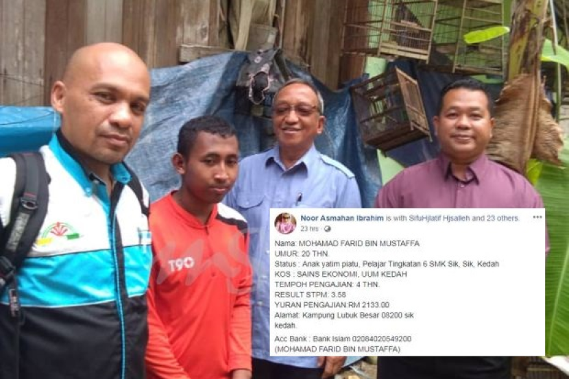 "Daripada segi yuran itu mungkin ia boleh dilunaskan menggunakan pinjaman Perbadanan Tabung Pendidikan Tinggi Nasional (PTPTN), jadi inisiatif kami adalah menyebarkan mengenai adik Farid untuk meminta sumbangan daripada orang ramai.