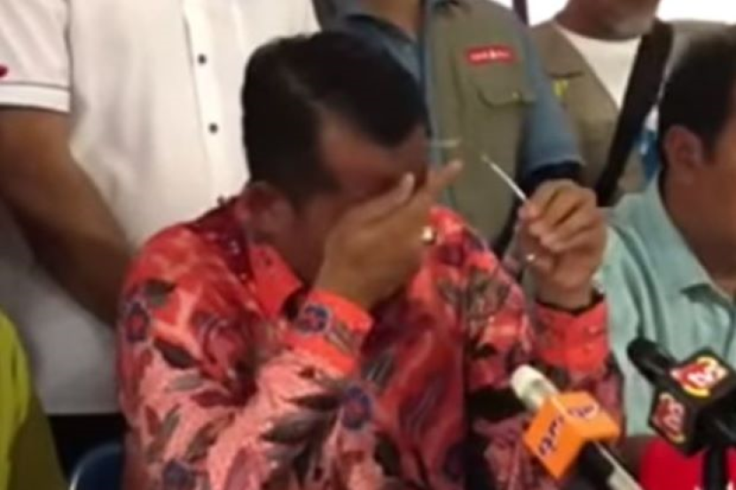Calon Pakatan Harapan bagi Pilihan Raya Kecil Seri Setia, Halimey Abu Bakar kelihatan menagis ketika sidang media yang diadakan sebagai tindak balas kepada calon PAS, Dr Halimah Ali yang menolak moto kempen 'budak tempatan' Halimey sebagai ketinggalan zaman.