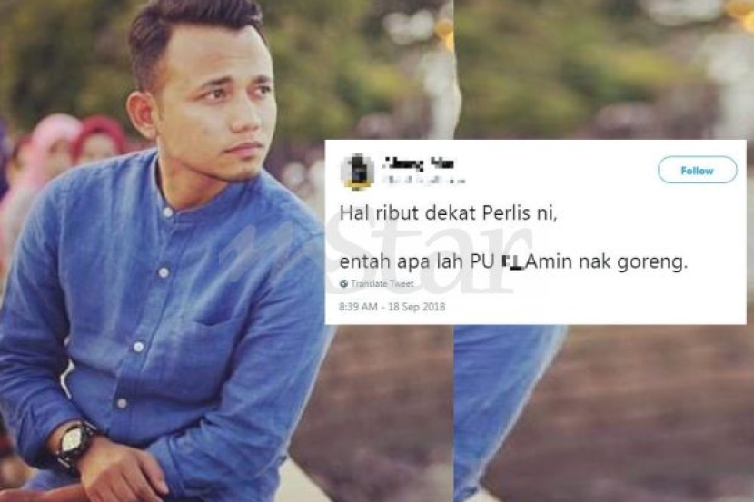 “Hal ribut dekat Perlis ni, entah apa lah PU ** Amin nak goreng (cakap),” menurut status seorang pengguna Twitter pada pagi Selasa yang merujuk kepada Pencetus Ummah (PU) Amin.