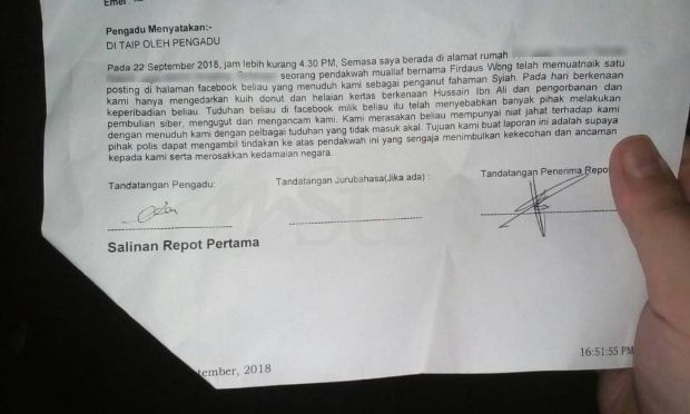 Laporan polis terhadap pendakwah yang mendakwa organisasi 'Who is Hussain' menyebarkan fahaman Syiah.