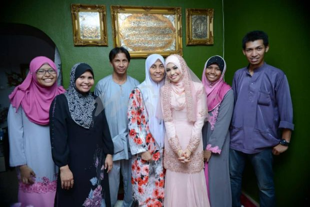 Gambar kenangan Aisyah (dua dari kanan) bersama ibunya semasa majlis akad nikah kakak sulungnya.