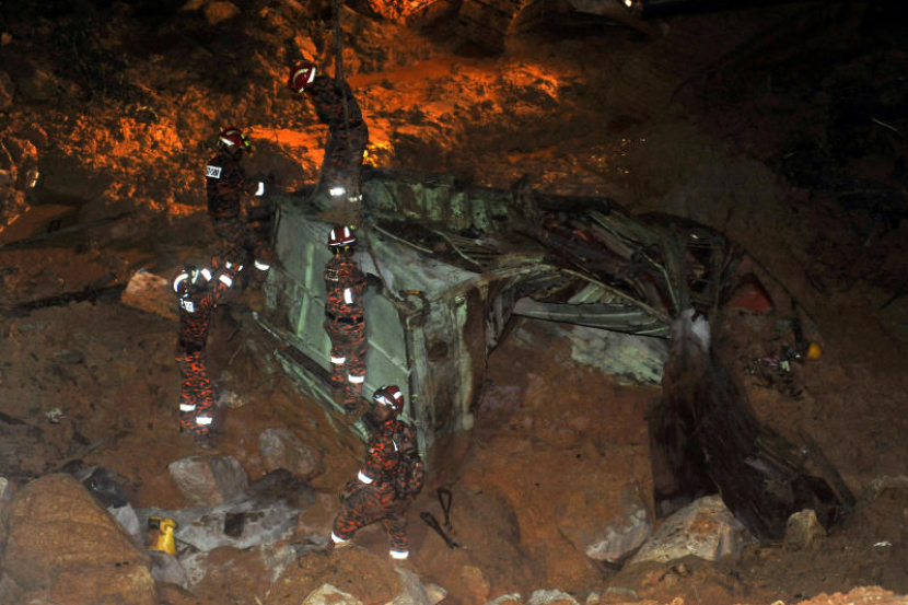 Kejadian tanah runtuh pada pukul 1.56 tengah hari Jumaat itu turut menyebabkan tiga cedera dan 10 lagi dikhuatiri tertimbus.