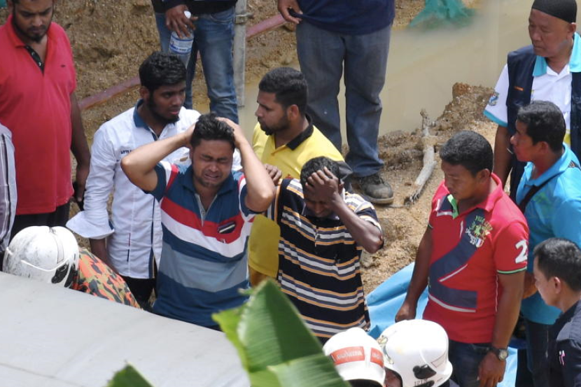 Mayat keenam, Mustak Hossain, warga Bangladesh dibawa keluar dari kawasan tanah runtuh.