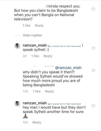Dalam banyak-banyak komen jelik yang ditinggalkan netizen kepada Ramzan, mujurlah ada segelintir rakyat Malaysia yang masih bersikap rasional dan baik hati mempertahankan model campuran British-Bangladesh itu dengan cara 'sekolahkan' mereka.