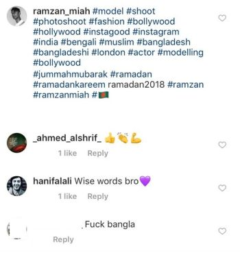 Bagaimanapun, beberapa hari selepas Ramzan menjadi perhatian netizen gara-gara menjadi individu pertama dari Bangladesh ke pentas peragaan itu, laman Instagramnya dicemari komen-komen jelik dari netizen!