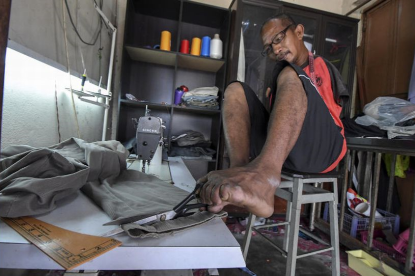"Sebenarnya kemahiran menjahit ini saya pelajari di Pusat Pemulihan Orang Kelainan Upaya, Cheras, Kuala Lumpur 30 tahun lalu dan sehingga kini kemahiran itulah saya gunakan untuk menyara keluarga," katanya yang mempunyai seorang isteri, Noraishah Hamzah, 44, dan tiga orang anak yang masih bersekolah.