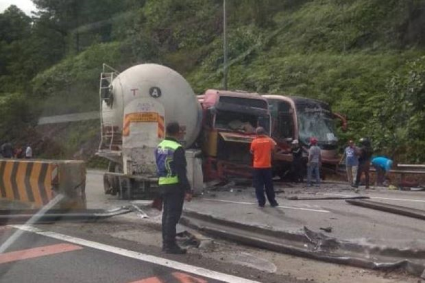 "Siasatan awal mendapati lori tangki dari arah selatan menghala ke arah utara telah hilang kawalan kemudian terbabas dan melanggar pembahagi jalan sebelum masuk ke laluan bertentangan lalu merempuh bas ekspres tersebut.