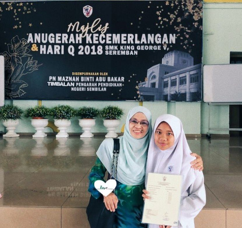 "Ibu sentiasa mencari ruang dan waktu untuk bersama saya, dia sentiasa berusaha menguruskan pengangkutan saya ke kelas malam, ke sekolah, ke tuisyen, dan sanggup mengorbankan masa rehatnya untuk bawa saya membeli buku rujukan walaupun kedai agak jauh dari rumah.