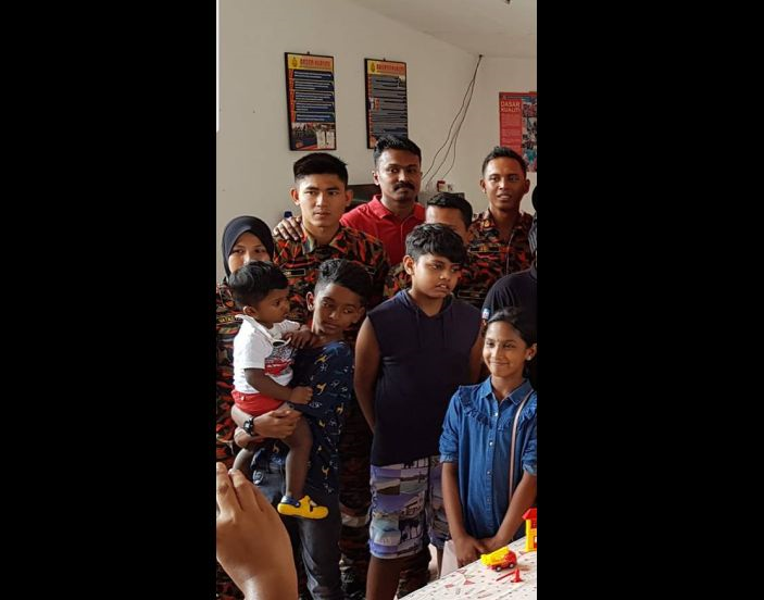 Gambar kenangan keluarga Prema bersama Muhammad Adib dan rakan setugasnya.