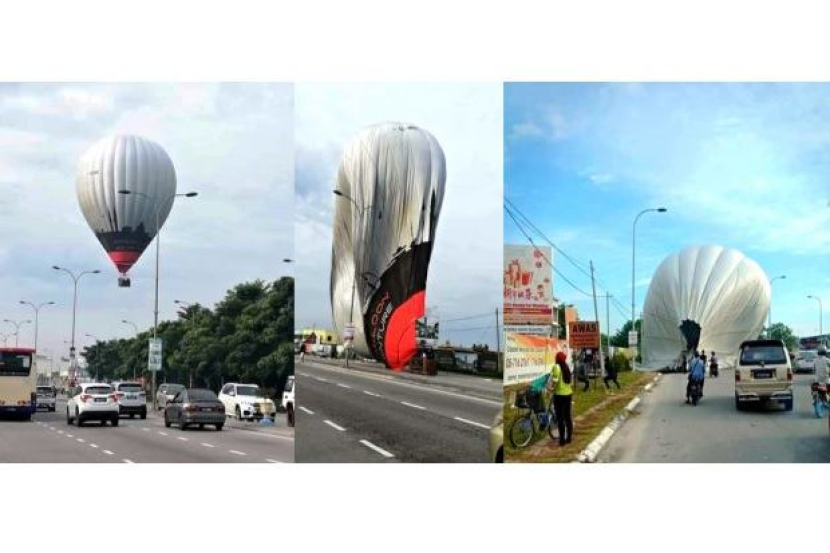 Para petugas MyBalloon Adventure mengambil langkah menghentikan lalu lintas sebelum belon berkenaan didaratkan dan dikemaskan dalam masa kira-kira 20 minit.