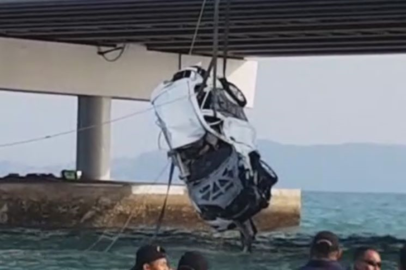 Dalam kejadian kira-kira pukul 3 pagi Ahad lalu, kenderaan itu tercampak ke dalam laut selepas dirempuh sebuah kereta Toyota Vios yang dipandu secara laju dan melulu dari arah pulau ke Seberang Perai.