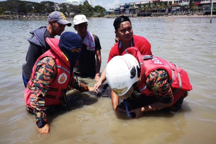 "Bomba bersama orang awam membantu mengalihkan ikan tersebut kembali ke laut dalam," katanya ketika ditemui pemberita di sini, Ahad.