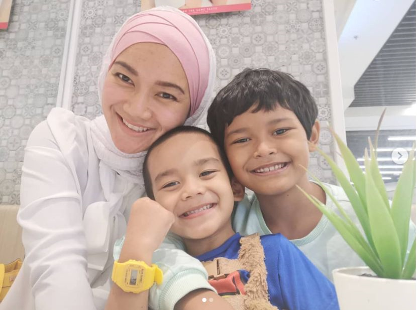 Intan Maizura (kiri) dan anak bongsunya, Muhammad. Foto Intan Maizura Othaman