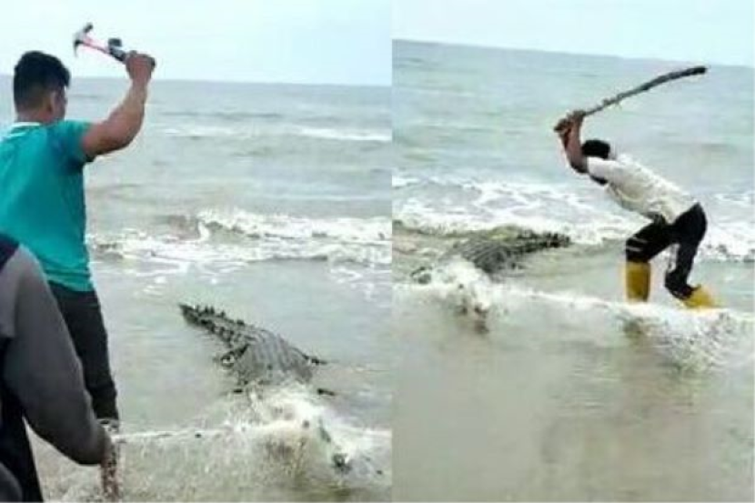 VIDEO dan gambar yang tersebar di media sosial menunjukkan sekumpulan lelaki di Miri, Sarawak memukul seekor buaya yang terjerat dalam jaring ikan dengan kejam.