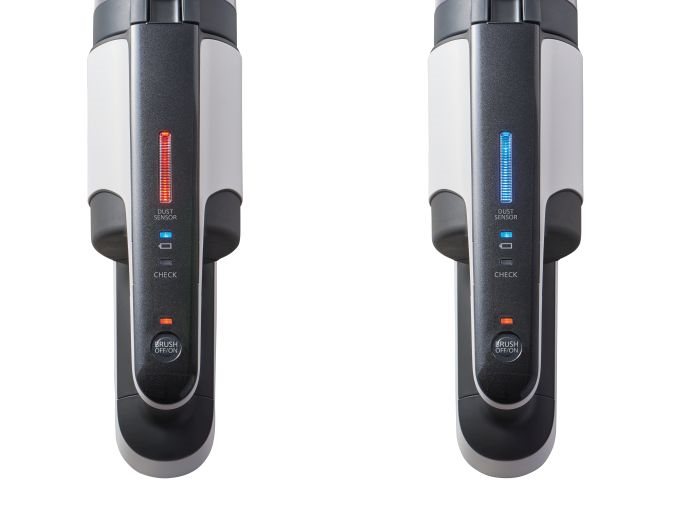 Pembersih Hampagas Tanpa Wayar Panasonic terbaharu mempunyai pengesan debu automatik di mana sensor akan berubah warna kepada merah sekiranya terdapat habuk pada kawasan berkenaan, dan biru sekiranya sudah dibersihkan.