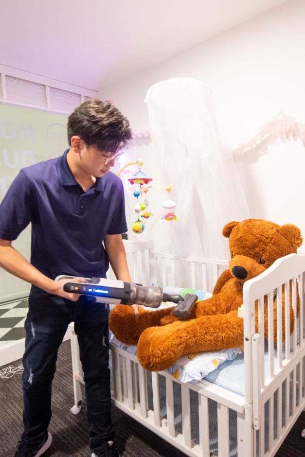 "Apabila sensor mengesan habuk, warna akan bertukar kepada merah, dan ia akan bertukar kepada biru selepas ia dibersihkan. Pembersih hampagas ini mempunyai muncung sedutan untuk membersihkan tilam dan katil untuk memastikan ruang lebih bersih," kata Promoter Panasonic, Dexter Yap.