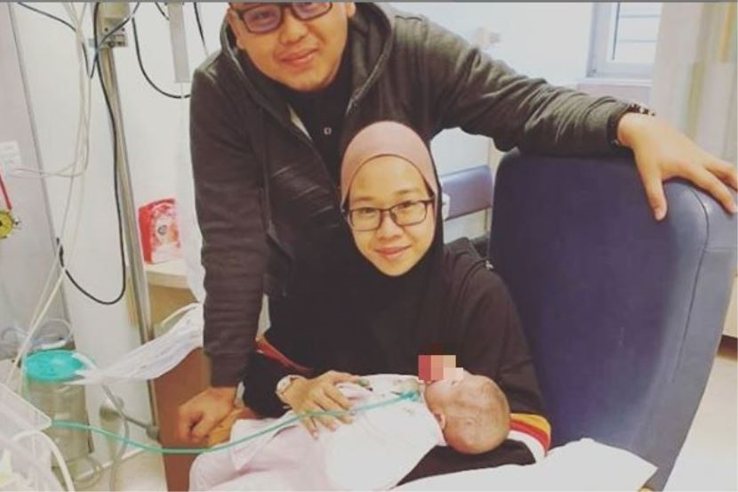 Nurul Erwani memangku Ainul sebelum pembedahan dilakukan.