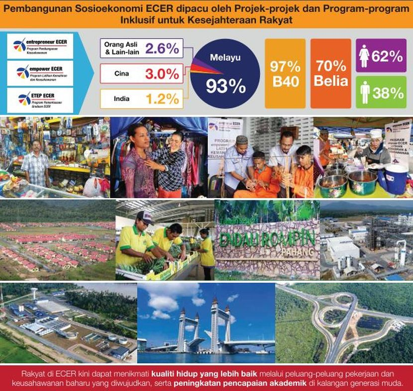 Sejak tahun 2008 sehingga kini, pihak Majlis Pembangunan Wilayah Ekonomi Pantai Timur (ECERDC) telah berjaya membina asas yang kukuh untuk membangunkan landskap sosioekonomi ECER berlandaskan Pelan Induk ECER 1.0 (2008-2017) dengan menarik pelaburan swasta yang telah menjana peluang-peluang pekerjaan baharu dan pelaksanaan pelbagai projek berimpak tinggi dan program modal insan yang bertujuan meningkatkan taraf hidup rakyat.