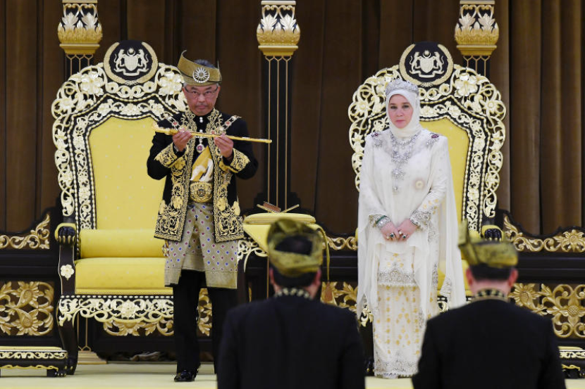 Al-Sultan Abdullah berkenan menerima Keris Kerajaan, simbol kebesaran dan kekuasaan Raja Berperlembagaan pada Istiadat Pertabalan Yang di-Pertuan Agong ke-16 di Istana Negara pada Selasa. fotoBERNAMA