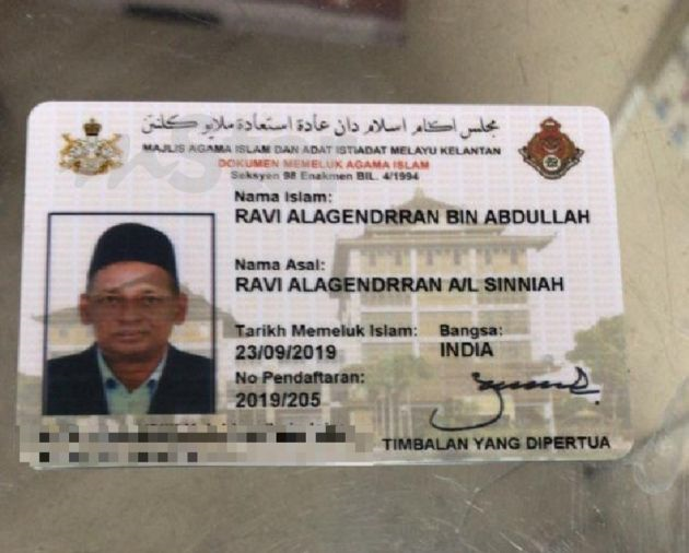 Dokumen sah Ravi memeluk Islam yang dikeluarkan Majlis Agama Islam dan Adat Istiadat Melayu Kelantan. Foto ihsan Ravi Alagendrran Abdullah