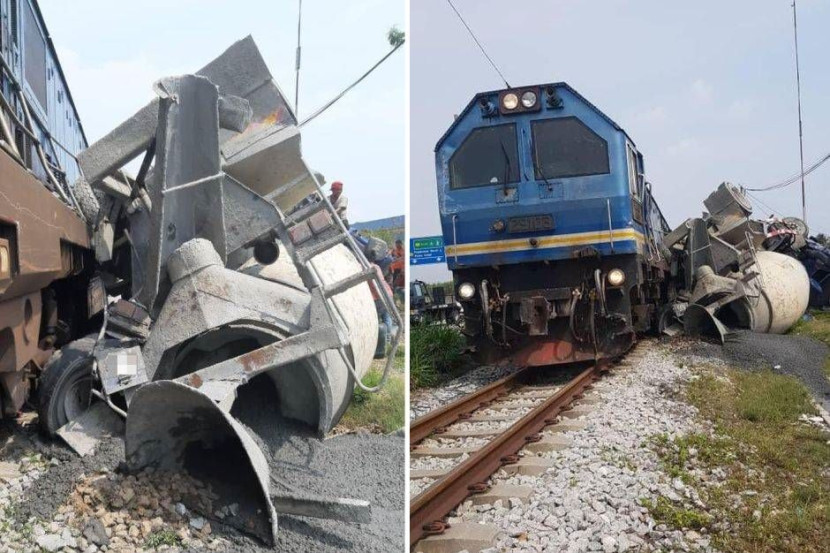 Lokomotif itu membunyikan hon ketika lori simen terbabit cuba untuk melintas landasan tetapi gagal.