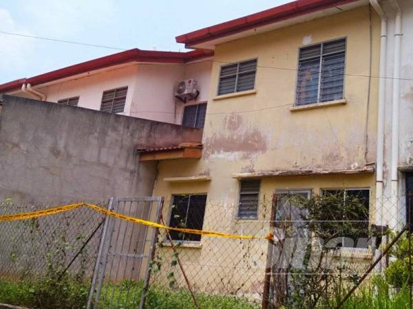 Bahagian belakang rumah mangsa turut diletakkan pita kuning pihak polis di Taman Merdeka Jaya, Batu Berendam.