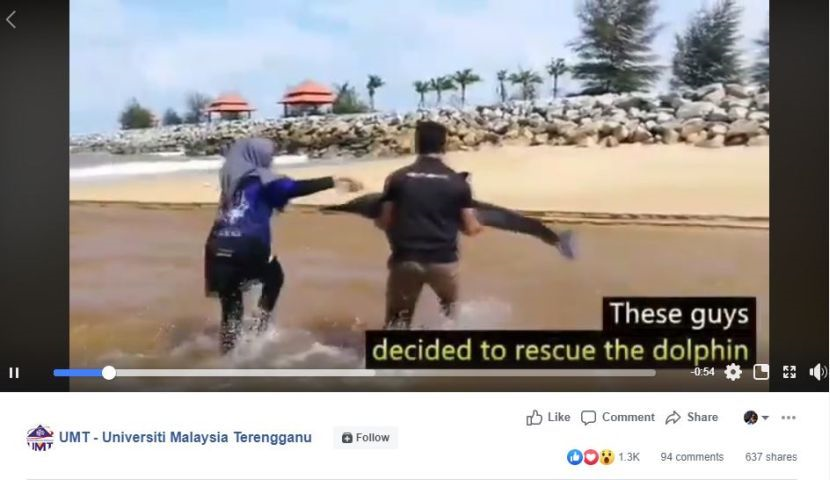 Aksi tujuh penuntut UMT yang menyelamatkan ikan lumba-lumba menjadi tular di media sosial.