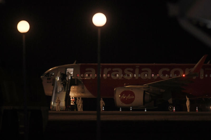 Seramai 107 individu yang dibawa pulang dari Wuhan, China selamat tiba di negara ini dengan menaiki pesawat khas AirAsia di Air Disaster Unit (ADU), pada pagi Selasa. Foto: Bernama