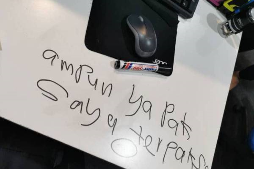 NOTA bertulis “Ampun ya Pak, saya terpaksa” sempat ditinggalkan oleh penjenayah di atas meja selepas memecah masuk pejabat penceramah bebas, Ustaz Ebit Lew di Bandar Baru Bangi, pada Isnin, yang melibatkan kerugian kira-kira RM50,000.