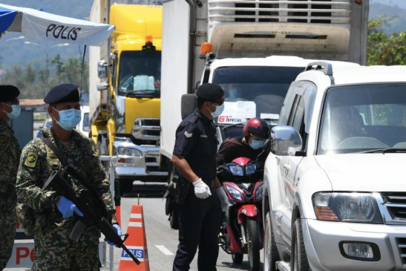 Polis mengadakan sekatan jalan raya bagi mengawal pergerakan rentas negeri. Gambar hiasan/Foto Bernama