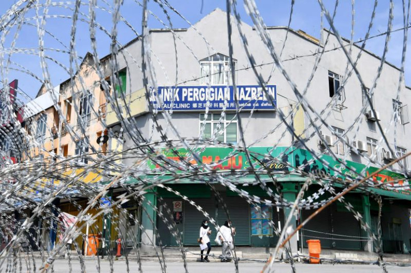 Penduduk di kawasan Medan 88, Bandar Baru Salak Tinggi yang dipasang kawat duri berikutan pelaksanaan Perintah Kawalan Pergerakan Diperketatkan (PKPD). Foto: Bernama