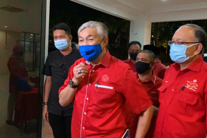 PRESIDEN Umno, Datuk Seri Dr Ahmad Zahid Hamidi dan bekas anggota majlis tertinggi parti itu, Datuk Seri Nazri Azri dilihat tiba di Bangunan Umno Perak.