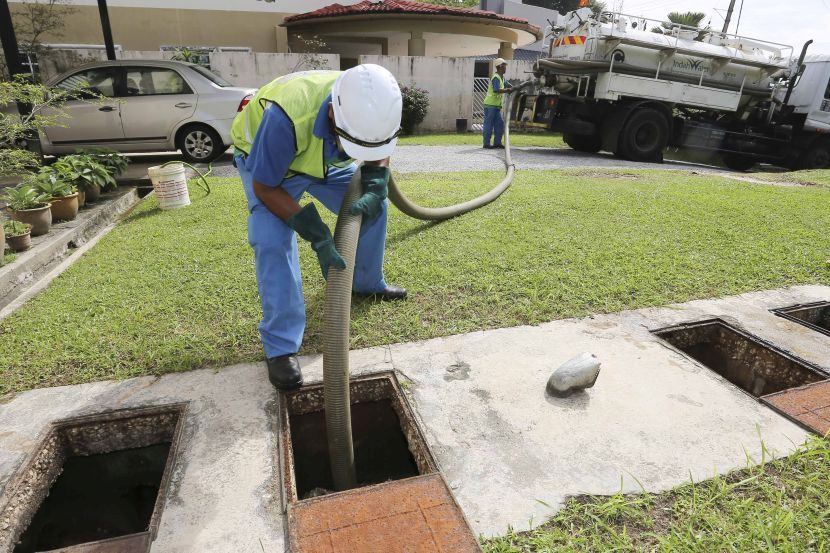 Kakitangan IWK sedang melakukan kerja-kerja pengosongan tangki septik indvidu di sebuah premis kediaman.